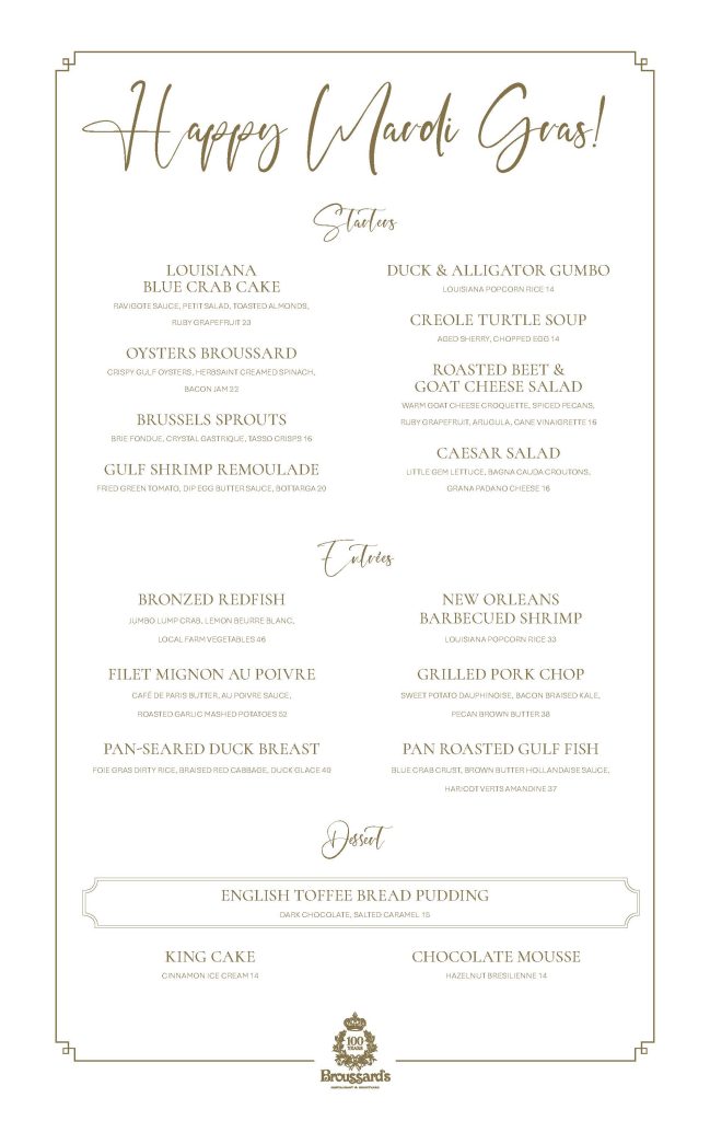 Laissez les bon temps rouler! Join us for dinner during the Mardi Gras festive season and enjoy our limited-time menu.