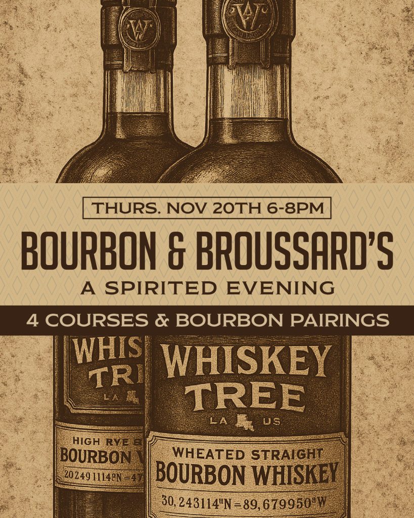 For the first time, Broussard’s welcomes diners to enjoy a night of bourbon and thoughtful food pairings. Led by one of our favorite local distillers—Seven Three Distilling. Get to know this award-winning brand and enjoy a night with fellow Bourbon drinkers in an intimate space. 🥃 Your ticket also includes a free tour of the Seven Three Distillery!